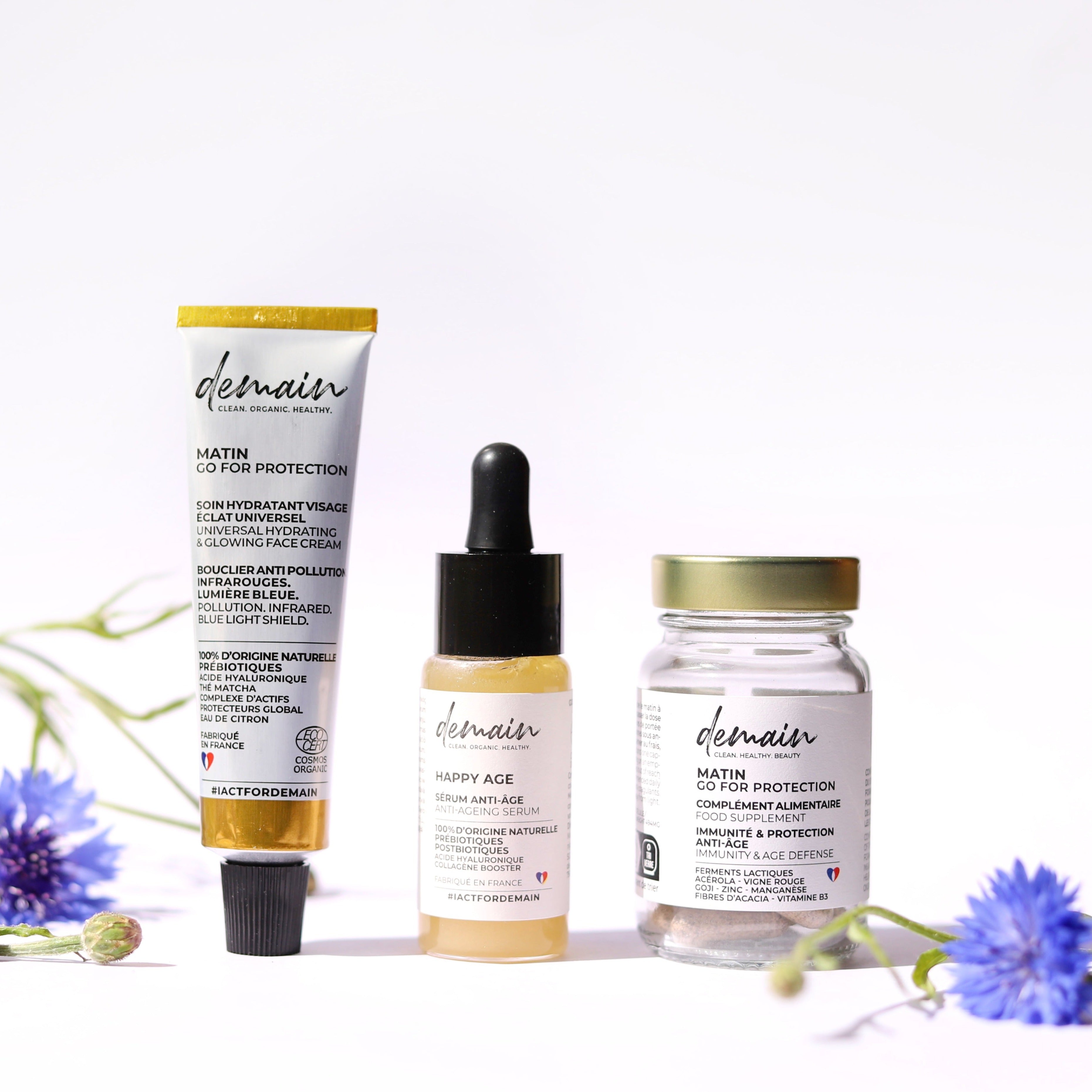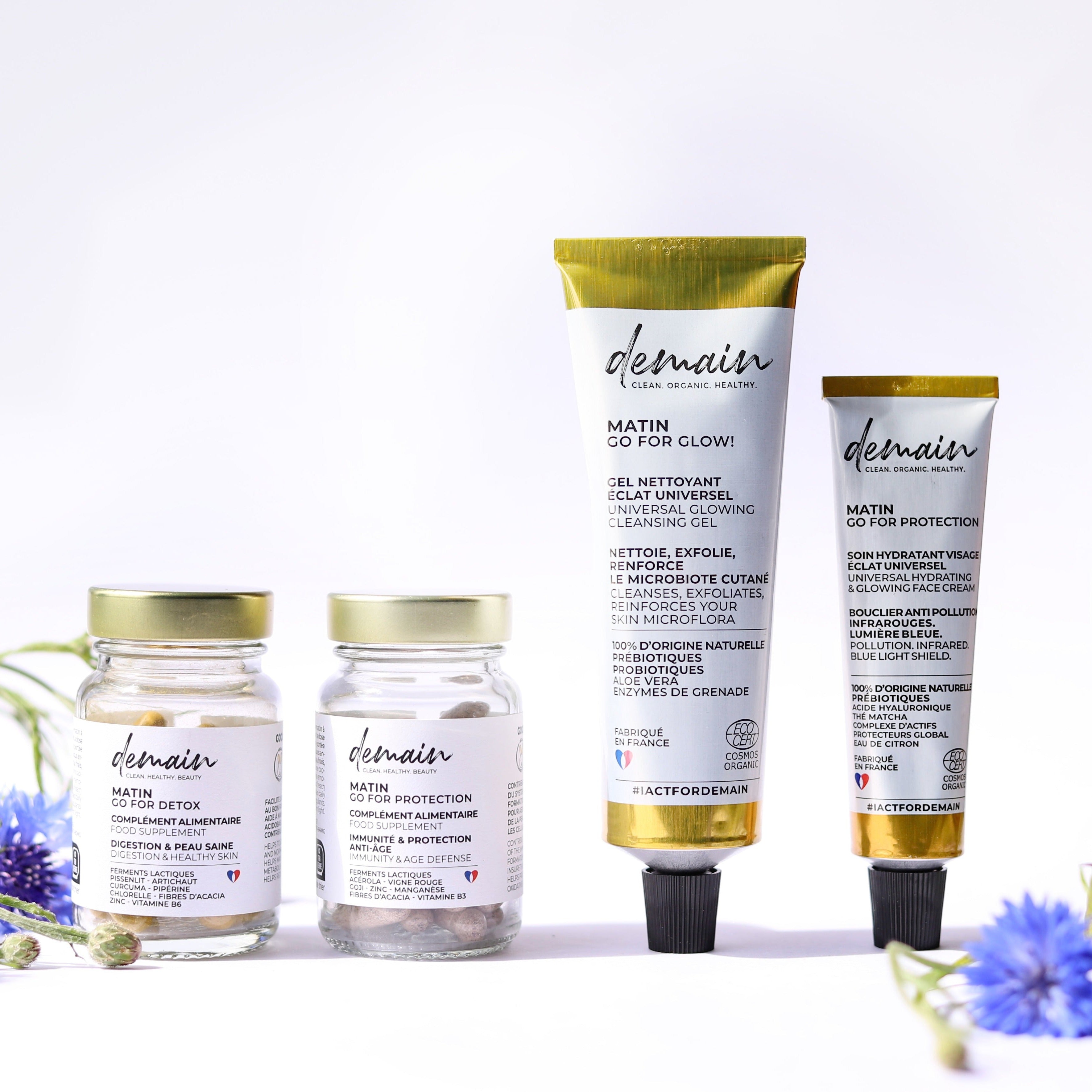 Yesterday, you only applied a cleanser and a cream to your skin to purify, nourish and protect it. Tomorrow, you will also ingest 1 or 2 capsules in the morning on an empty stomach to purify, protect and nourish your body from the inside and strengthen the action of your cosmetics to obtain even more results!