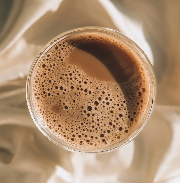 Mélangez 1 sachet de poudre de collagène & acide hyaluronique Age With Grace avec 1 càs de poudre de cacao.