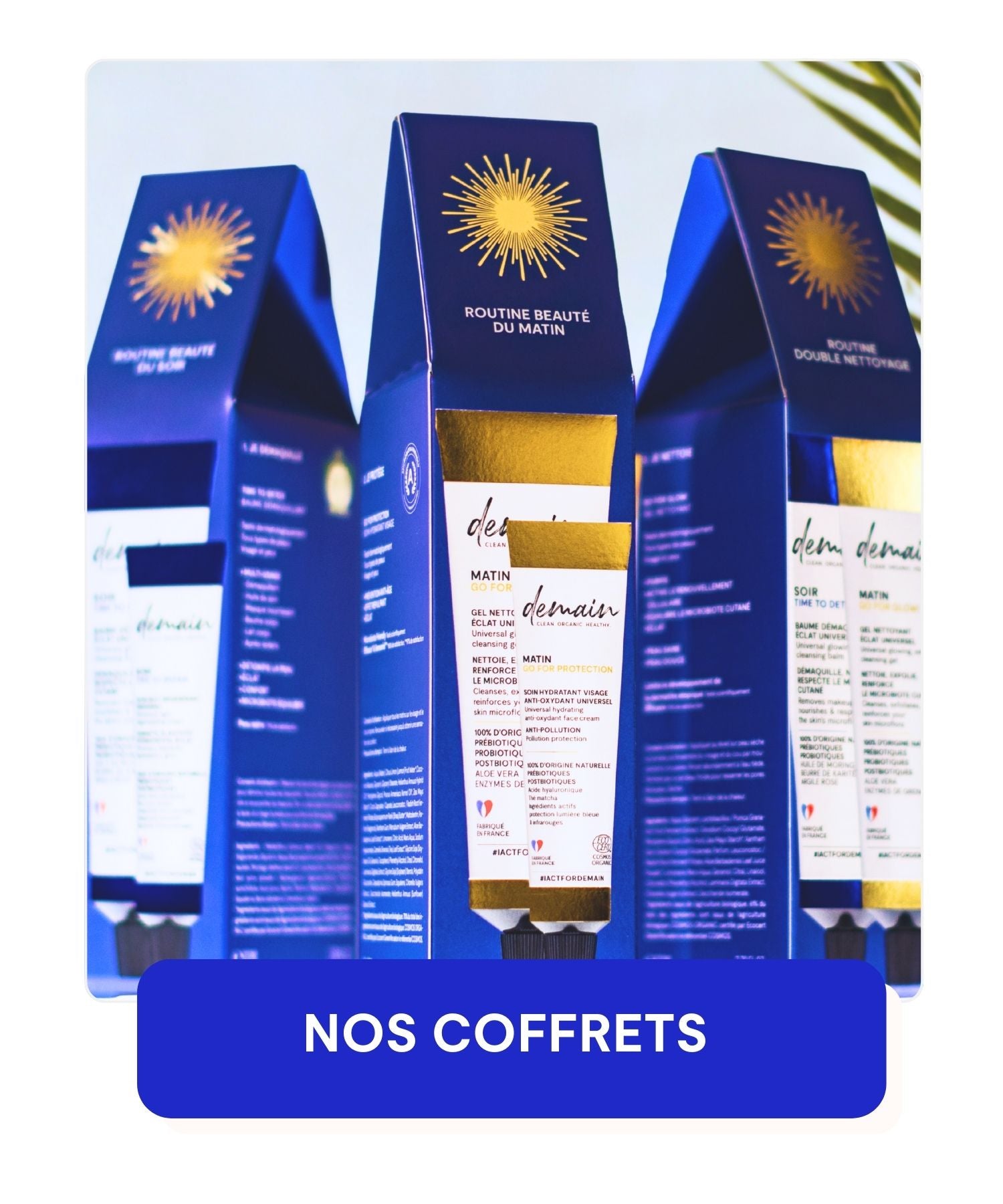 Les soins Demain Beauty sont 100 % d’origine naturelle, certifiés bio, enrichis en prébiotiques et probiotiques pour rééquilibrer, apaiser et sublimer la peau. Un rituel clean, sensoriel et hautement efficace, pensé pour révéler la beauté naturelle à chaque âge. Parce qu’elle mérite ce qu’il y a de plus pur, de plus doux, de plus juste.